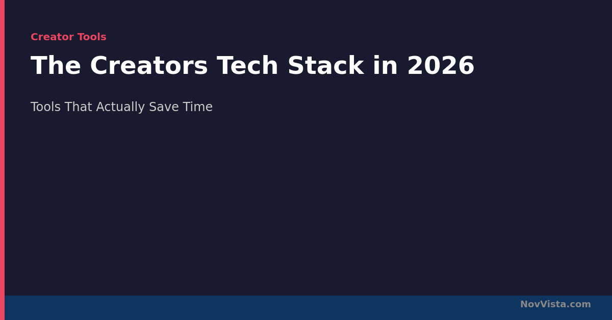一个干净、有意识的2026年创作者技术栈比一个令人印象深刻的栈更有价值。关于栈中每个工具应该问的问题不是”这个好吗?”,而是”这个工具本月是否在我的工作流程中值得占有一席之地?”那些明确回答”是”的工具就是应该留下的工具。